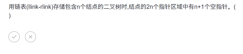 解析:对于含n个结点的二叉树,每个结点有 2 个指针域(左、右指针),总共有2n个指针域。又因为二叉树中除根结点外,每个结点都有一个指针指向它,所以非空指针数为 n - 1 。因此,空指针数为 2n - (n - 1) = n + 1 ,该说法正确。