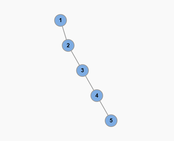 比如,一个有 5 个结点的单链状二叉树,每个非叶子结点只有一个子结点,叶子结点没有子结点,这显然符合二叉树的规则。