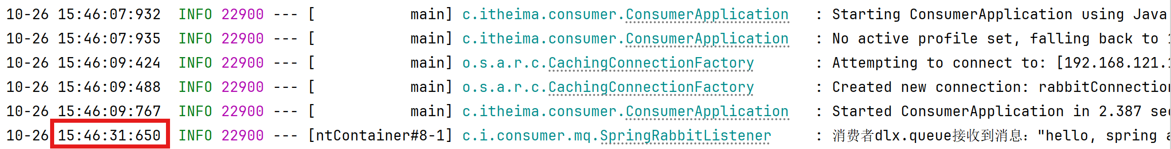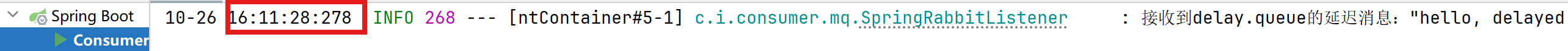 log.info("接收到delay.queue的延迟消息:{}", msg);