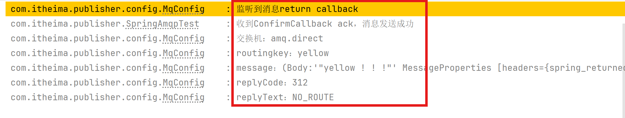 每个RabbitTemplate只能配置一个ReturnCallback,在配置类中统一设置。