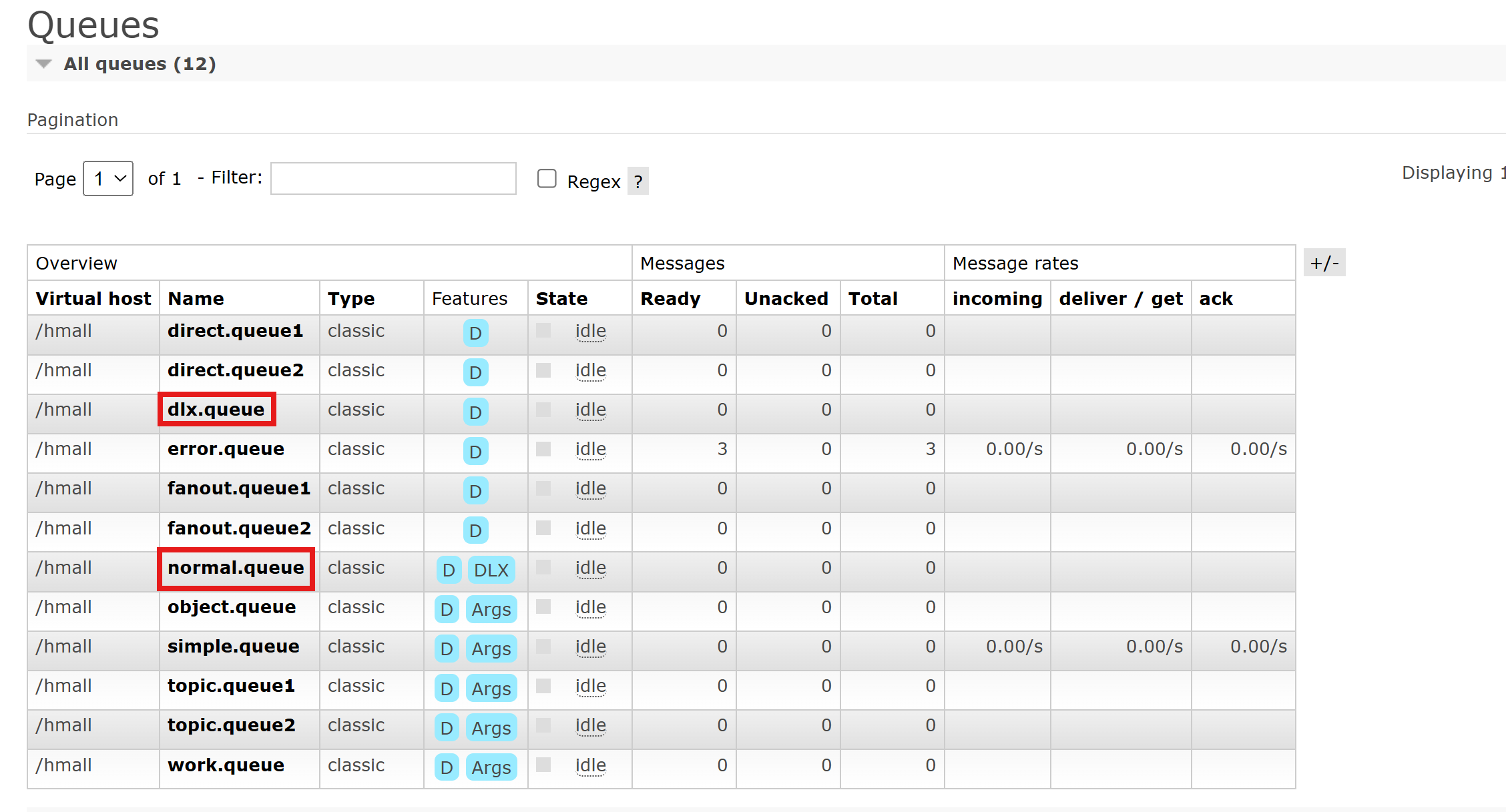 可以看到10秒后死信交换机的队列dlx.queue收到消息