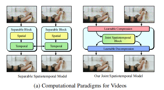 - 运动建模薄弱:现有方法将空间与时间建模分离(先处理单帧空间信息,再拼接时间关系),易生成 "动态图像"(仅轻微帧间变化)而非具有复杂运动的真实视频,且常出现闪烁、物体形变等时空不一致问题。