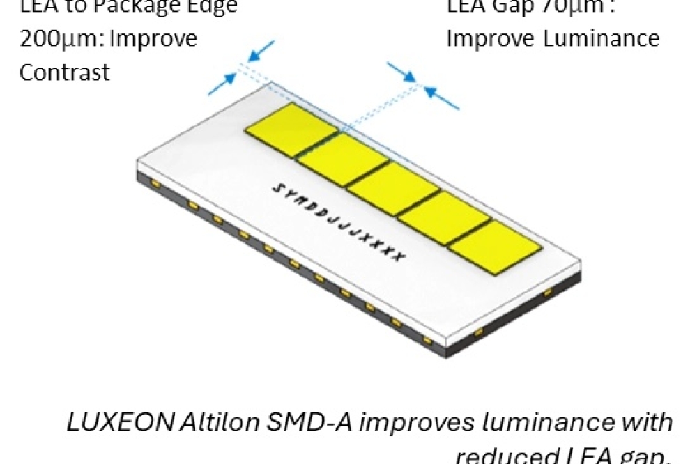 此外,Luxeon Altilon SMD - A较小的边缘据说有助于提高对比度,并营造出锐利、自然的切断效果。通过将发光区域(LEAs)之间的间隙缩减至70微米,并实现最佳的模到荧光粉尺寸,亮度得到了显著提升。