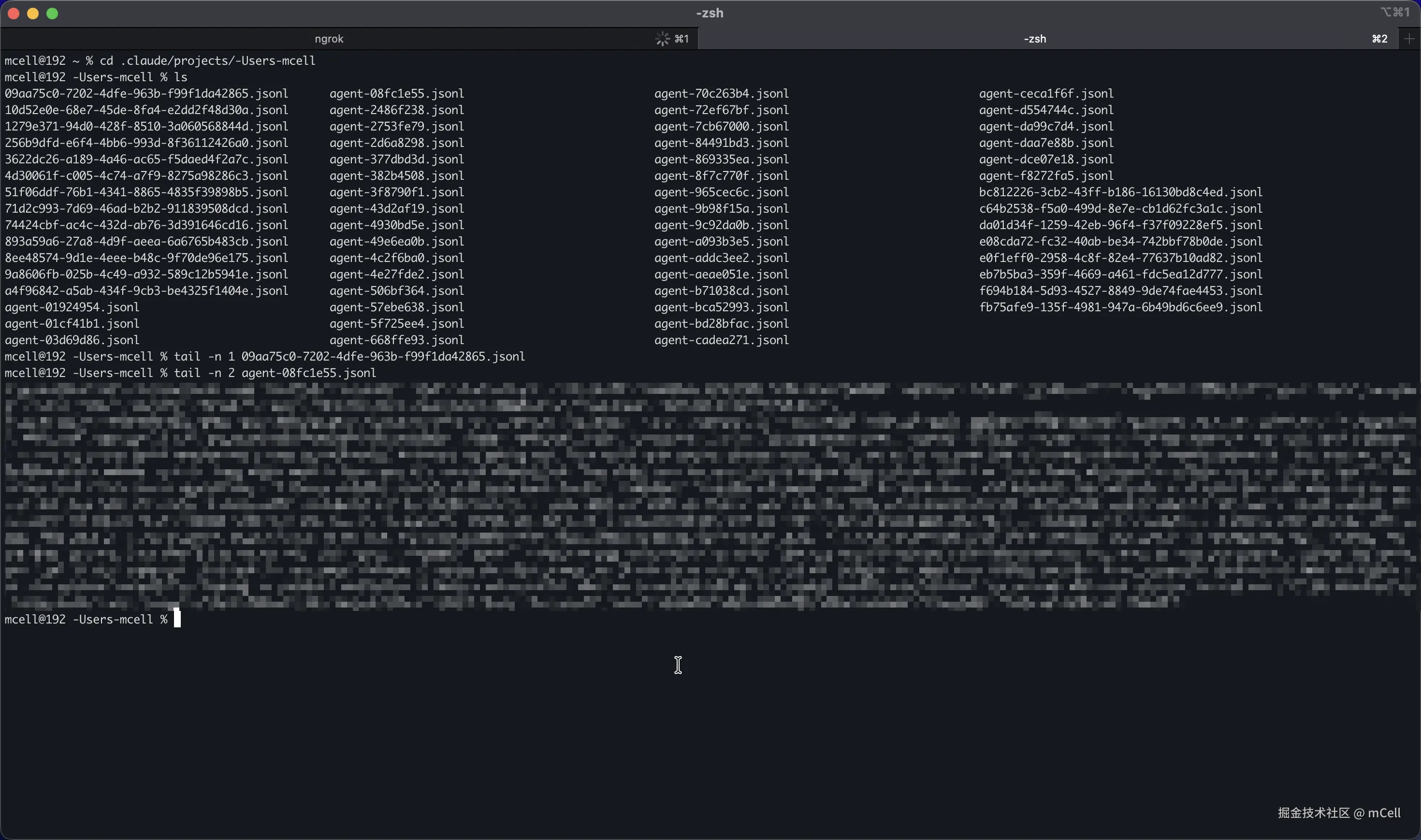 我查看了 Claude 编码助手(我在 Mac 上的路径是 ./claude/projects/*.jsonl)的会话日志文件。这些 .jsonl 文件记录了我和 Agent 的完整对话。