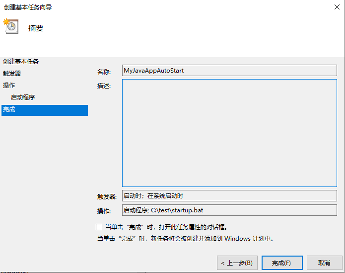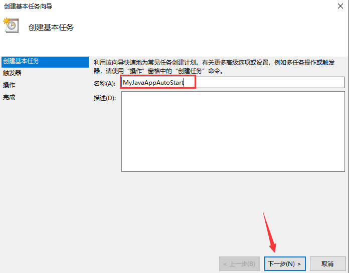 3、名称:MyJavaAppAutoStart(随便起名)