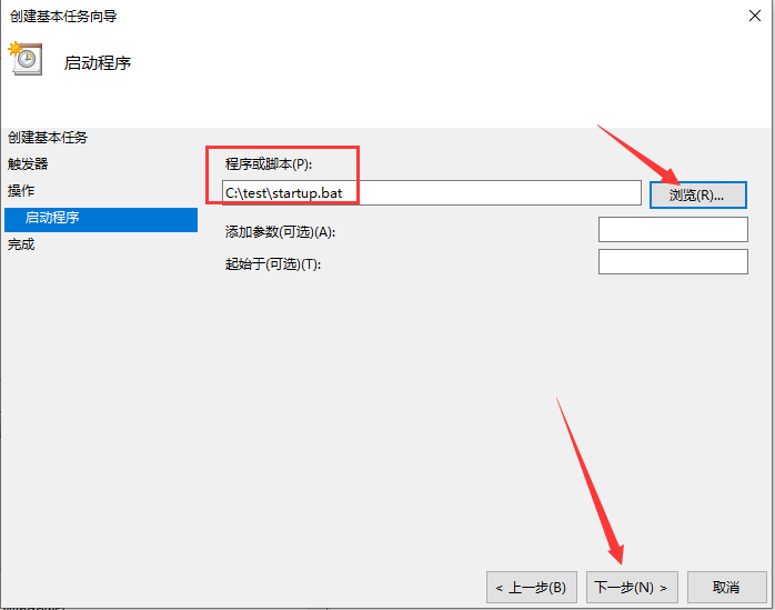 6、程序或脚本:C:\test\startup.bat
