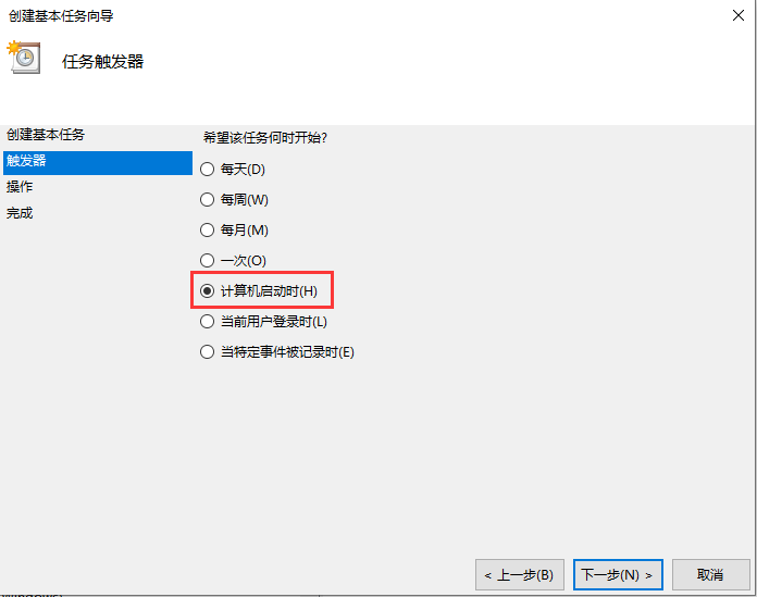 4、触发器:"计算机启动时"