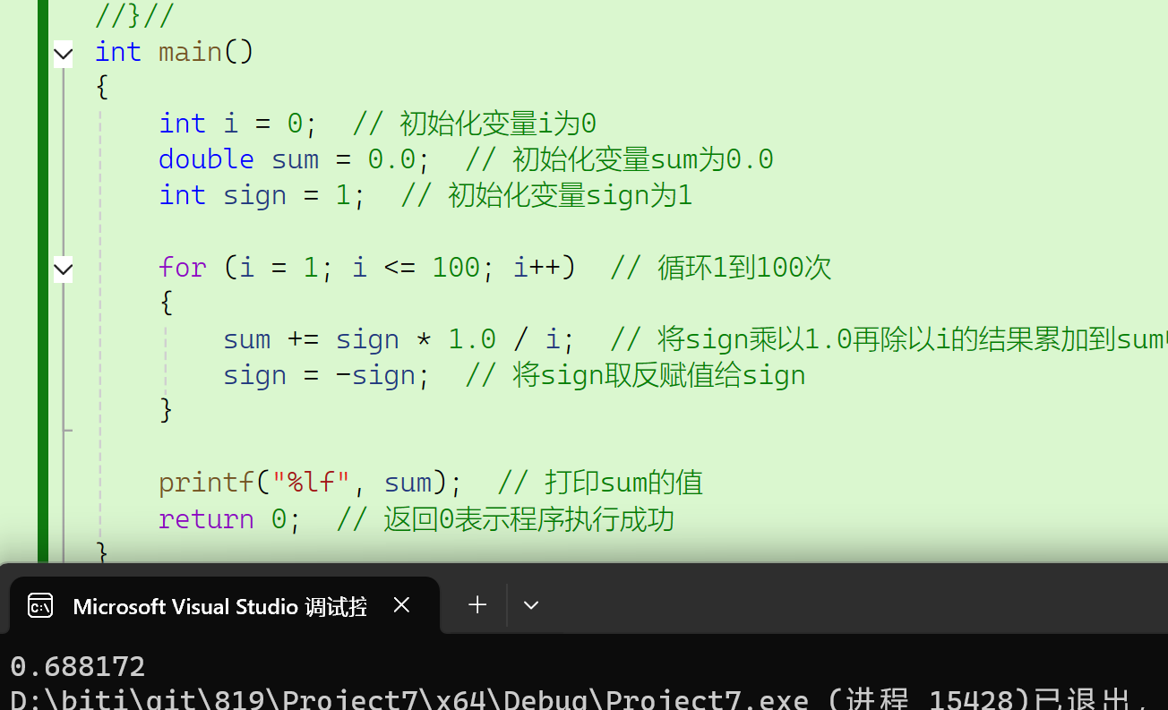 打印1/1-1/2+1/3-1/4+1/5 +1/100