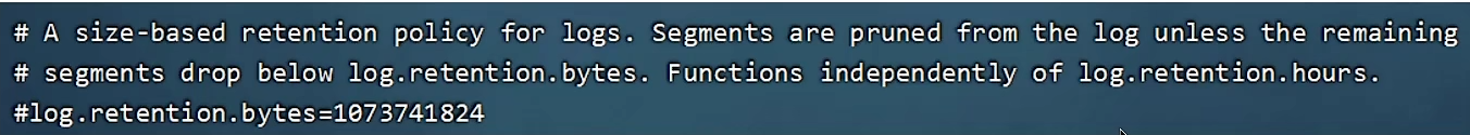 3.2 根据topic存储数据的大小,当topic所占的日志文件大小大于一定的阈值(默认 1 GB),则开始删除最久的消息,需要手动开启。