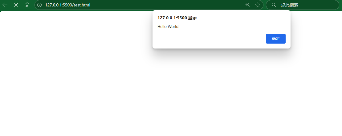 alert() 表示 Window 对象的方法,调用该方法将弹出一个提示对话框,显示参数字符串 "Hello World!"。