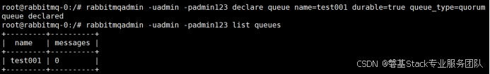 rabbitmqadmin -uadmin -padmin123 declare queue name=test001 durable=true queue_type=quorum