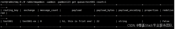 rabbitmqadmin -uadmin -padmin123 get queue=test001 count=1