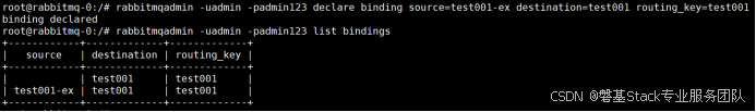 rabbitmqadmin -uadmin -padmin123 declare binding source=test001-ex destination=test001 routing_key=test001