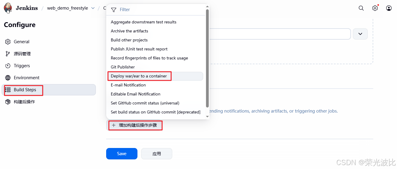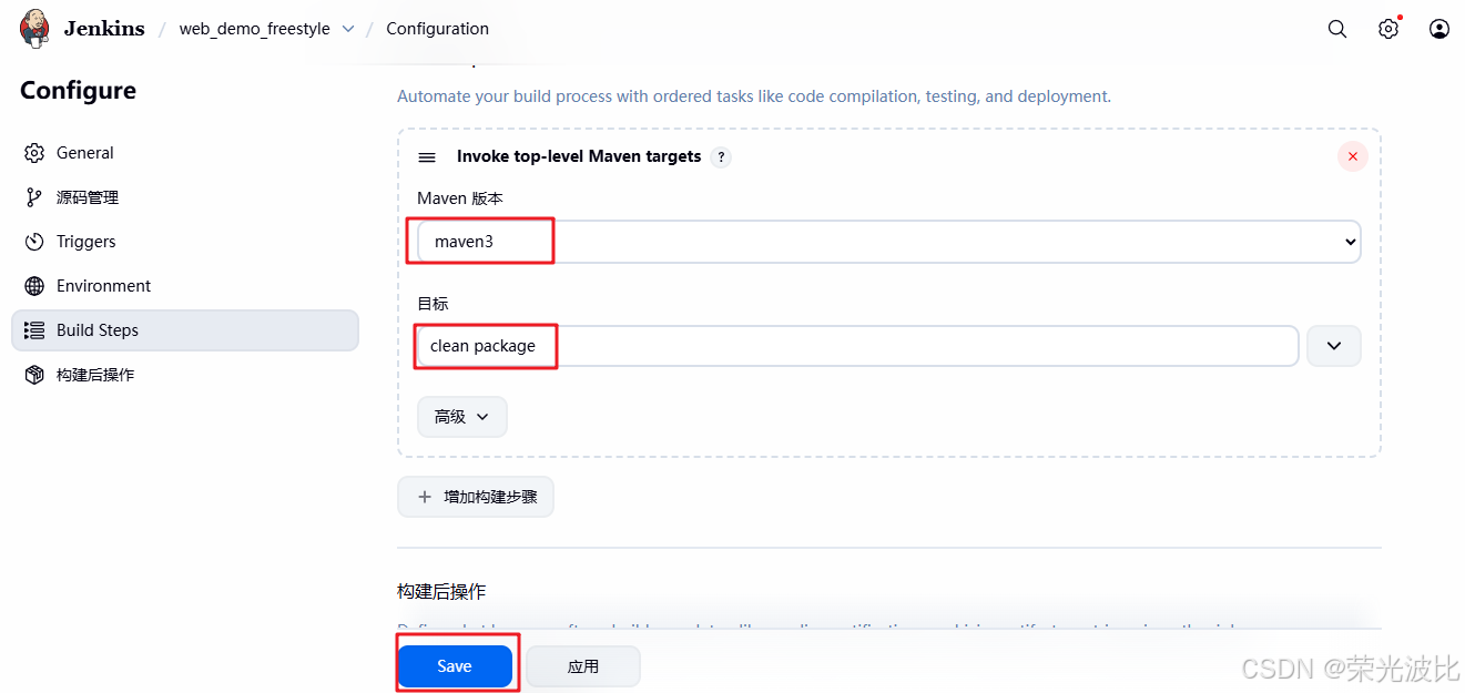 取消勾选 Enable authentication for '/project' end-point(解决权限问题,否则Webhook触发失败)。- 点击