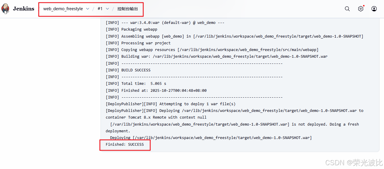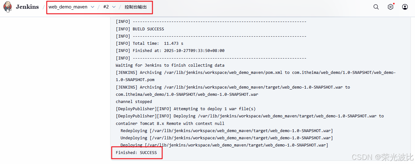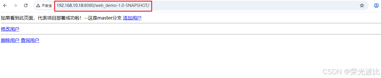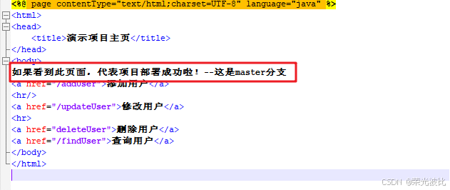 2、验证:Jenkins会拉取v1分支代码并部署,访问Tomcat能看到v1分支的页面(需在v1分支修改index.jsp内容)。