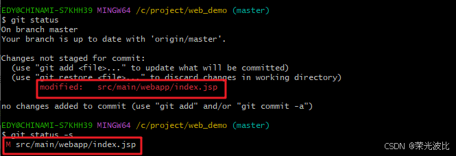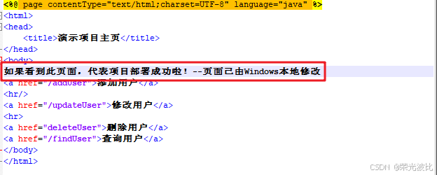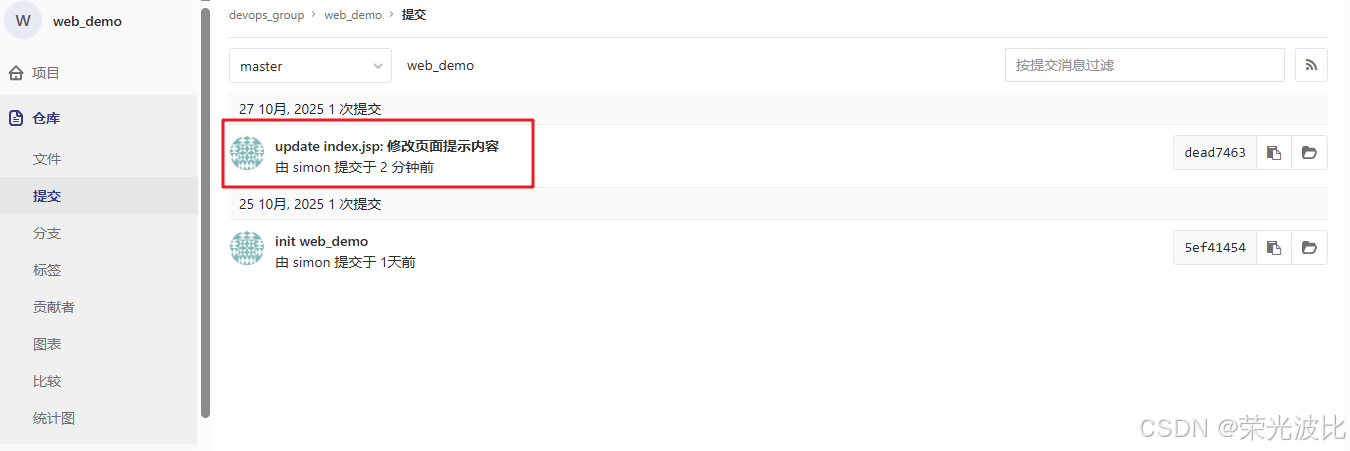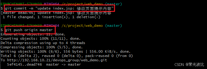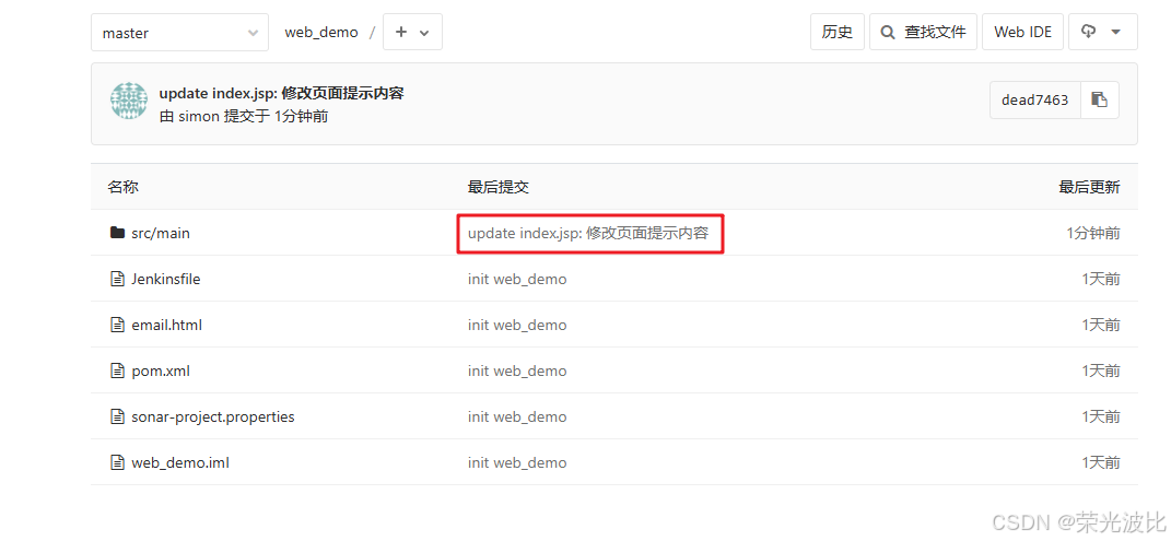1、本地修改web_demo项目的index.jsp(如添加"Webhook测试"文字)。