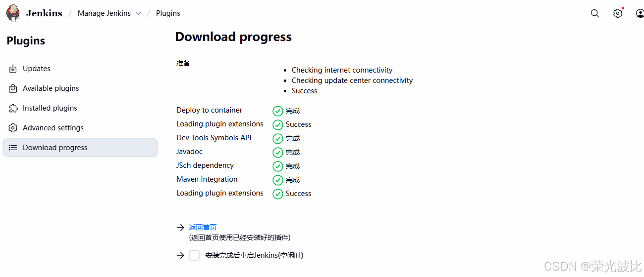 Manage Jenkins→插件管理,安装Email Extension Template插件,重启Jenkins。
