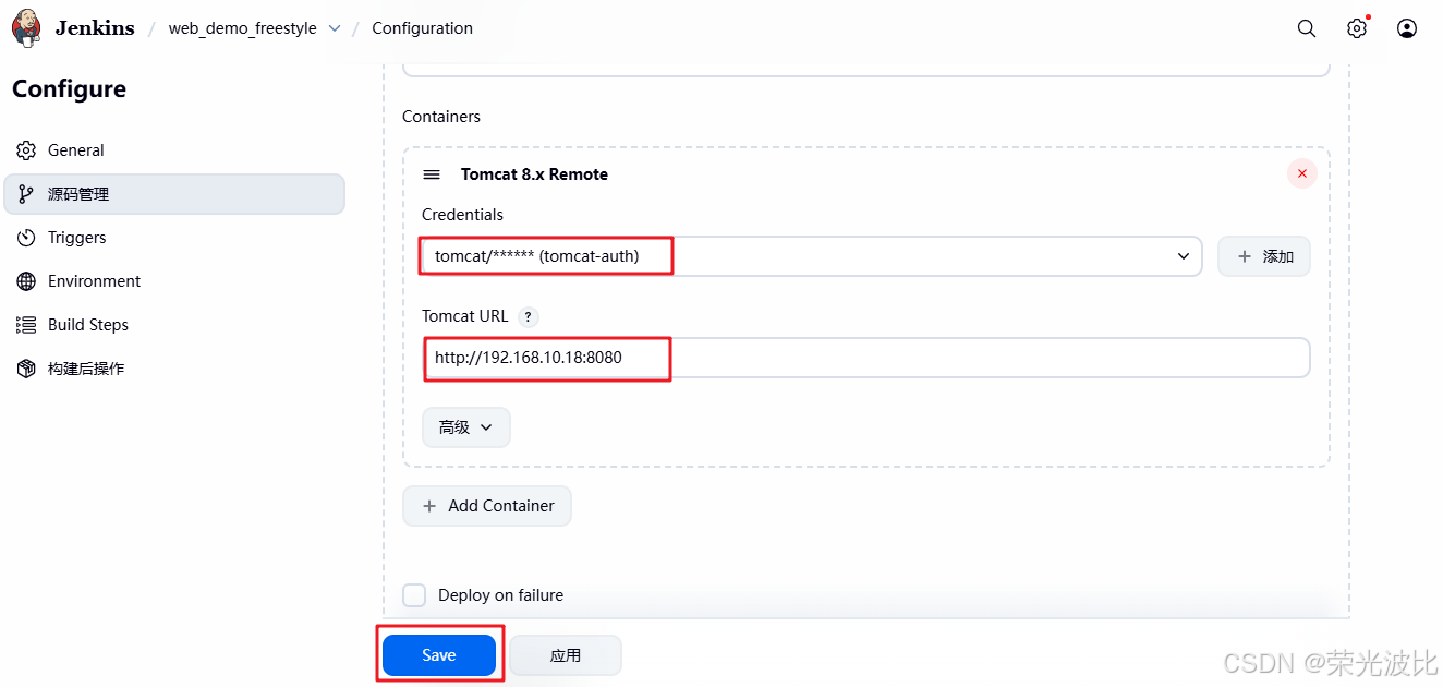 - 192.168.10.18:应用测试服务器(部署Tomcat,用于接收Jenkins构建的应用包)