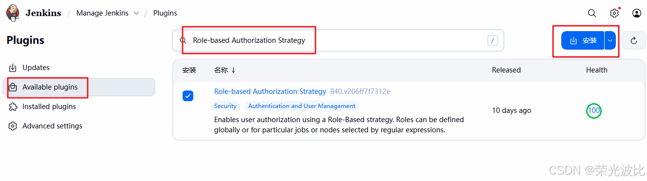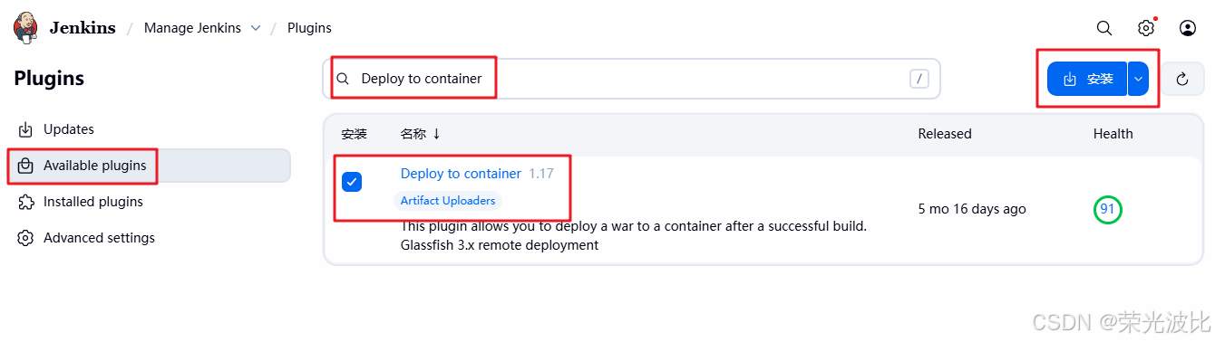 1、安装GitLab插件:Manage Jenkins→插件管理→可选插件,搜索并安装GitLab插件。