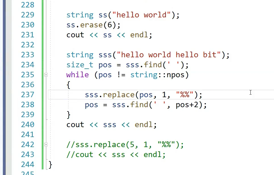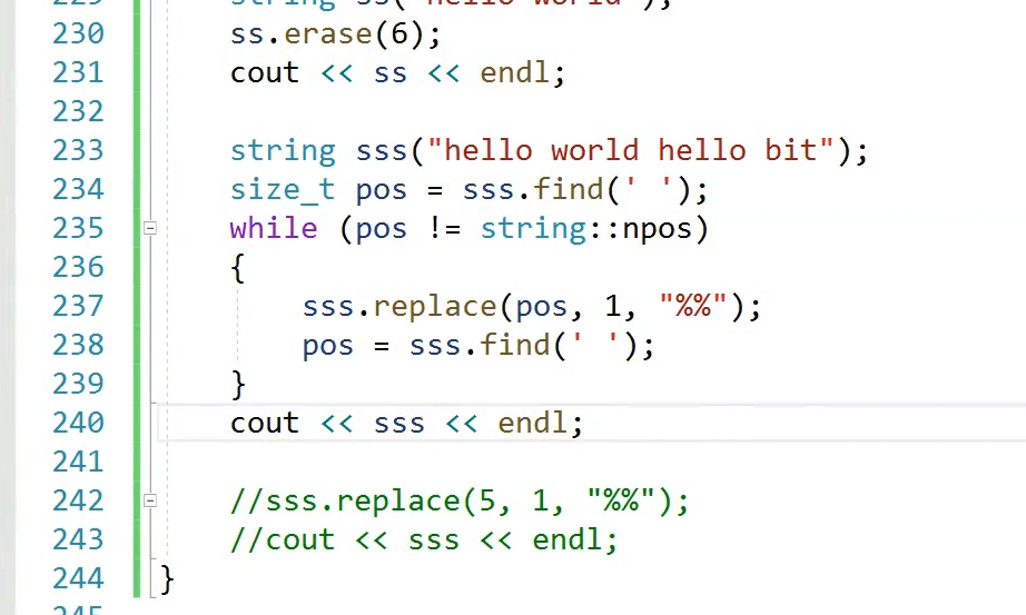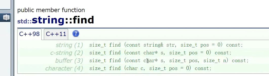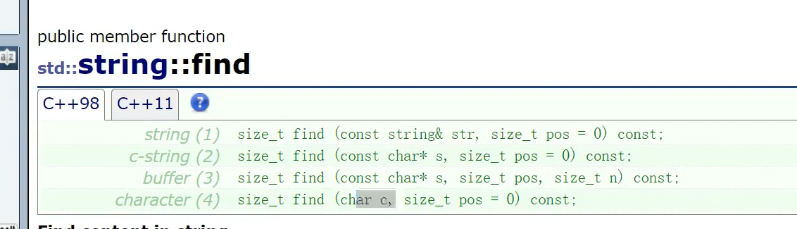 find在pos位置查找一个字符串,字符,可以借助find 完成,返回值是size ------t,怎么判断找没找到