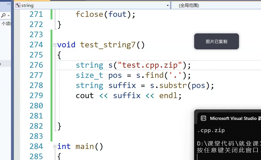 反着找,find找到然后要取 子串 copy用的很少, 因为copy要copy到一个buffer里面。那个buffer 要自己开,万一不够,不好