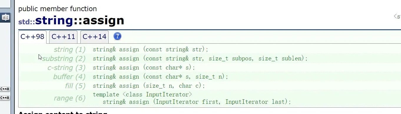 assign也是赋值,也是个冗余接口,把之前的覆盖掉,跟operator 有重叠,很多类型但是用途不大