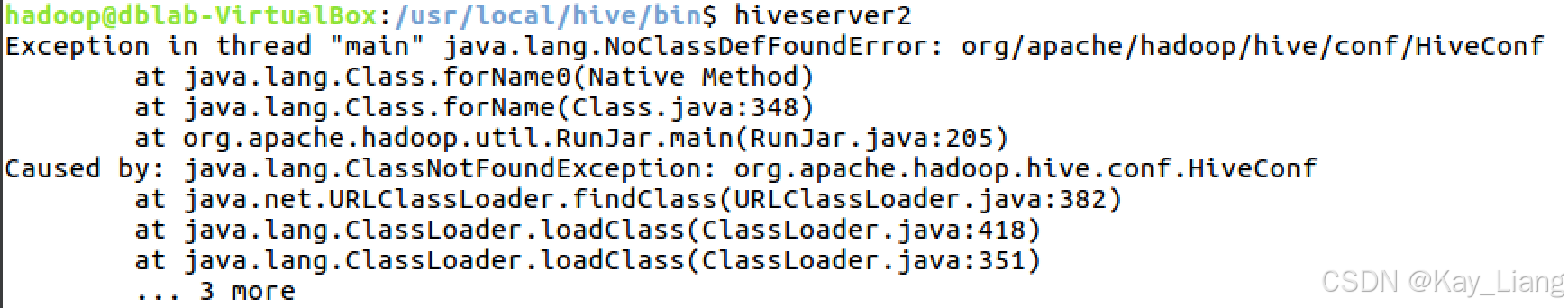 二、问题二:HiveServer2 启动时类缺失(NoClassDefFoundError: HiveConf)
