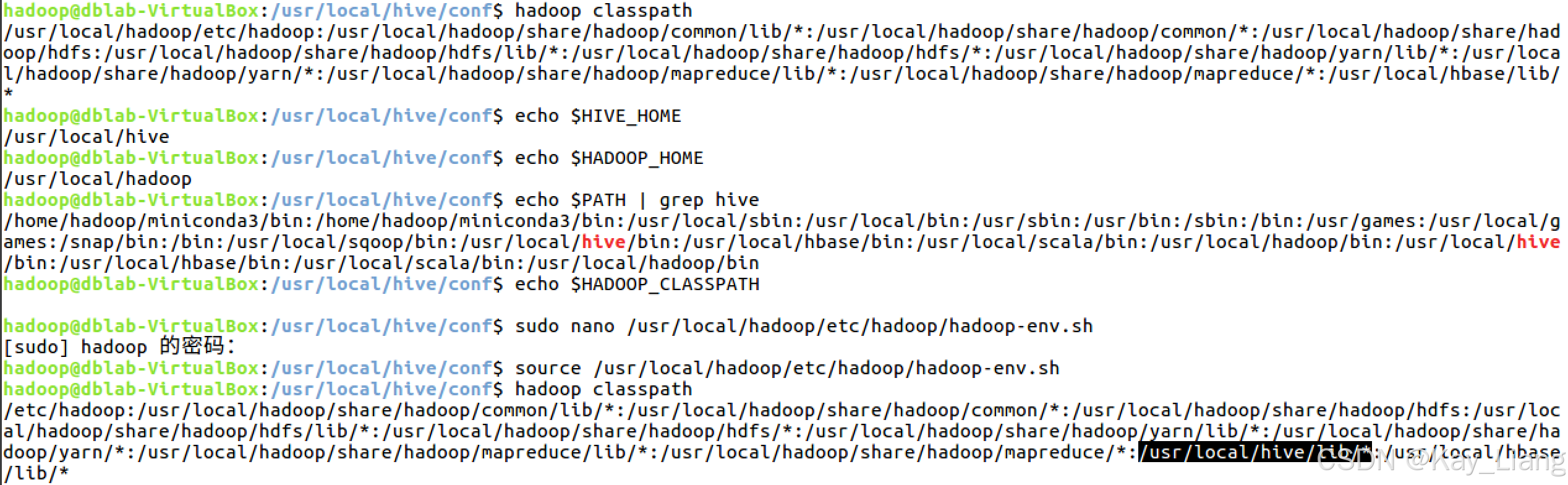 bashsource $HADOOP_HOME/etc/hadoop/hadoop-env.sh hadoop classpath # 查看是否包含 $HIVE_HOME/lib/*