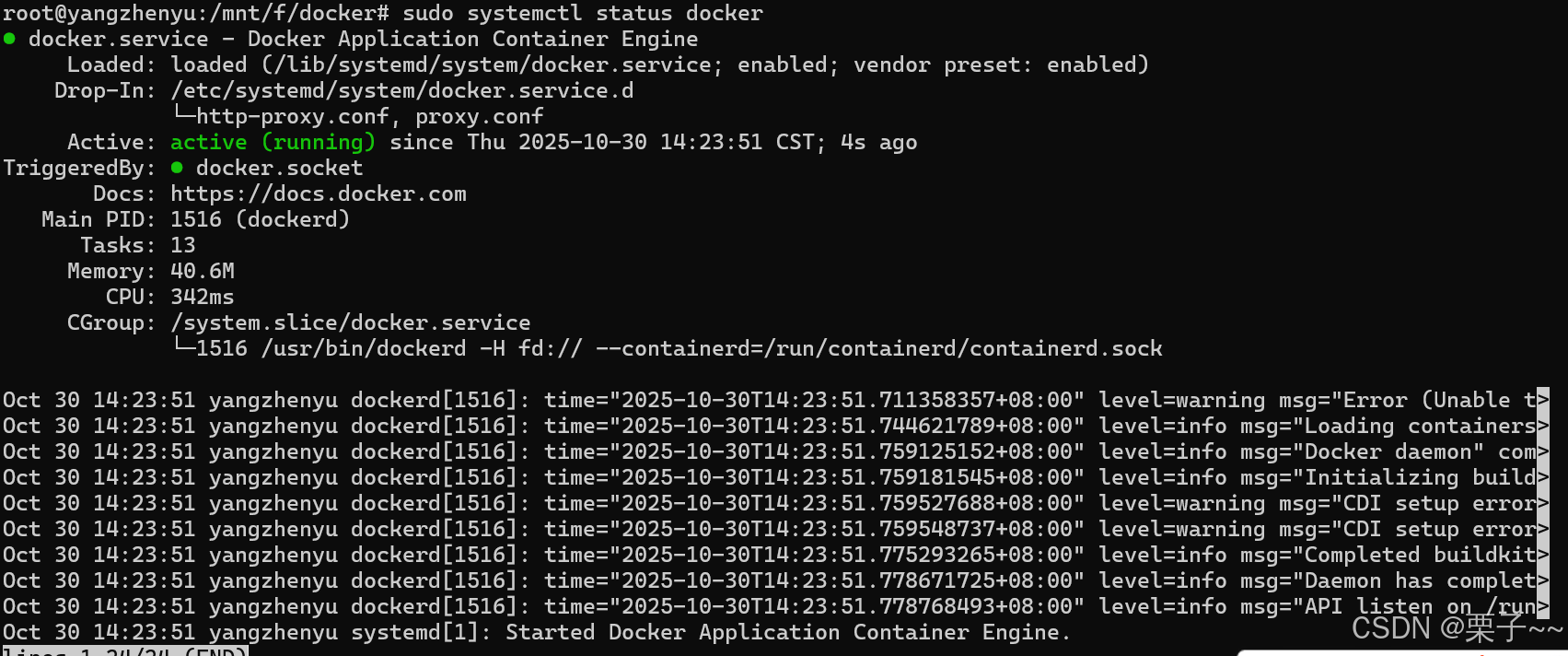 查看docker是否启动: