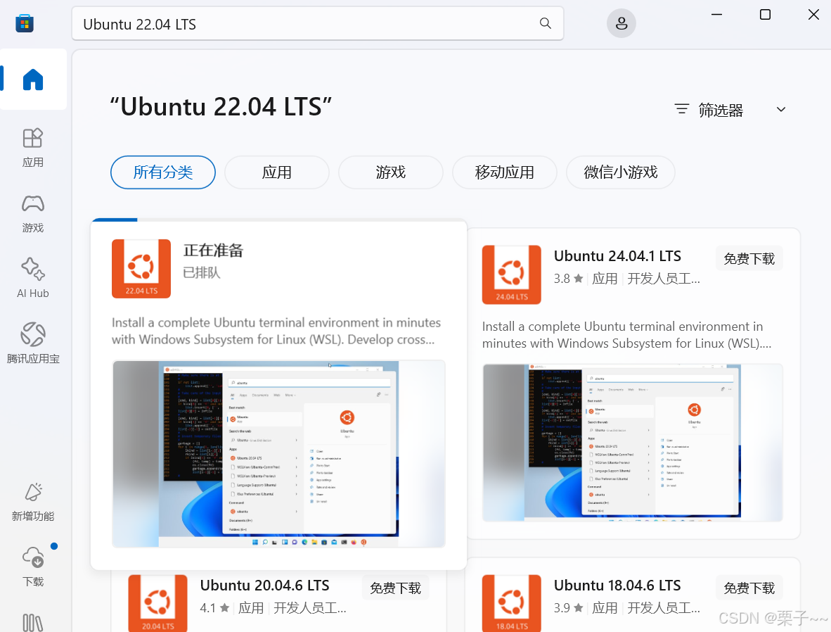 2. 搜索 Ubuntu 22.04 LTS。