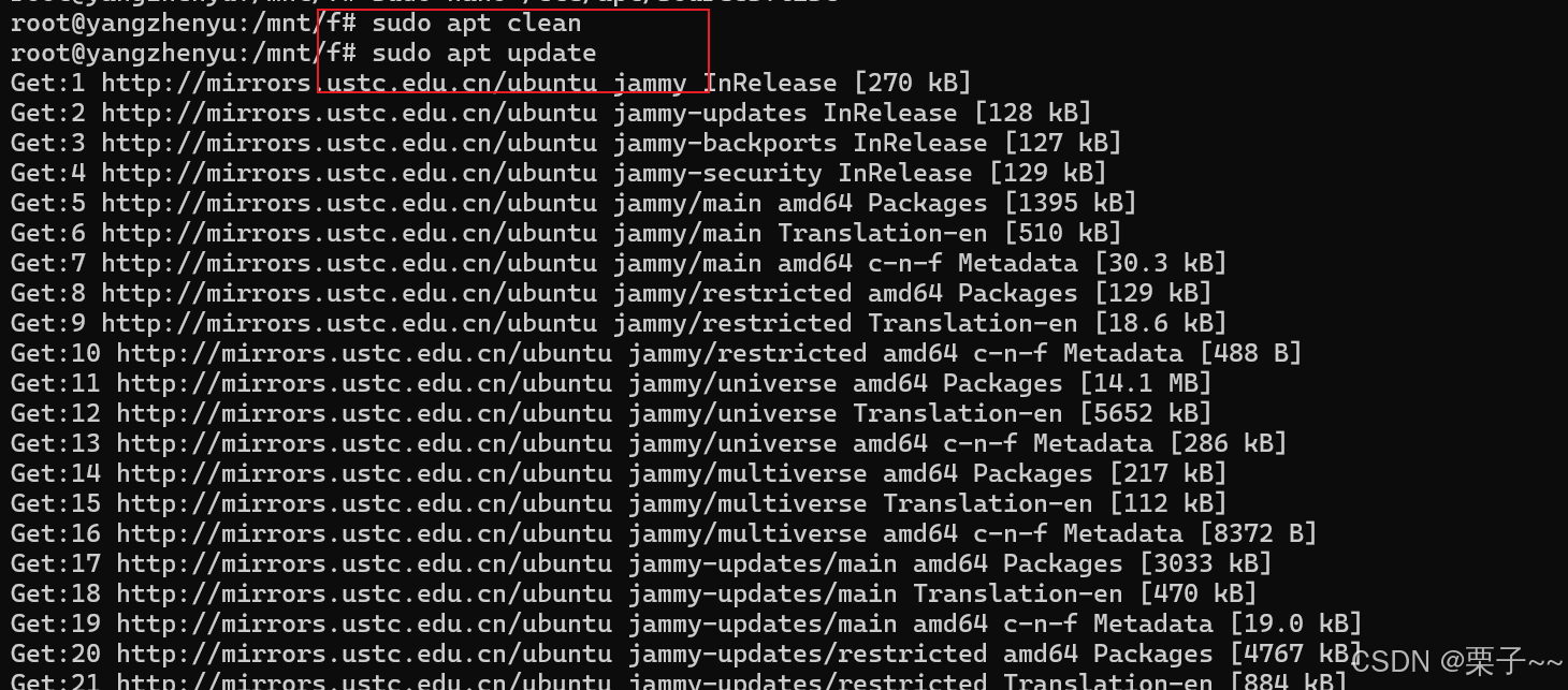 会从软件源下载最新的软件包信息,这包括可用的最新版本、依赖关系以及其他更新信息。即使你已经安装过一些软件包,运行这一步可以确保你将从最新的软件源安装或升级软件包。