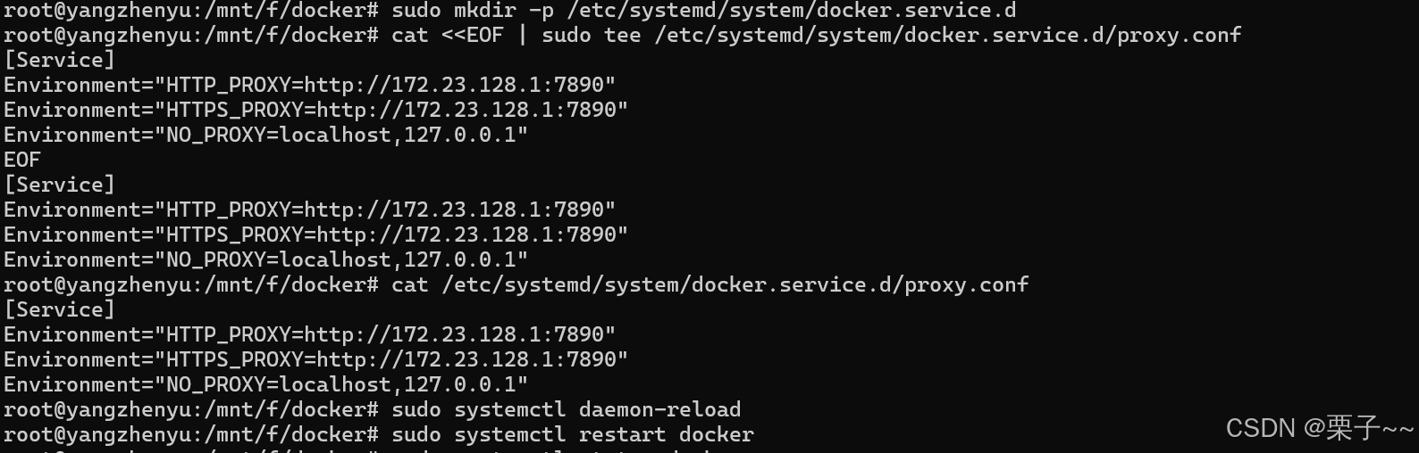 cat <<EOF | sudo tee /etc/systemd/system/docker.service.d/proxy.conf