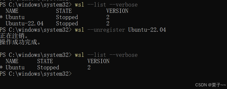 1.3.2. 查看Ubuntu启动状态、删除已注册的发行版