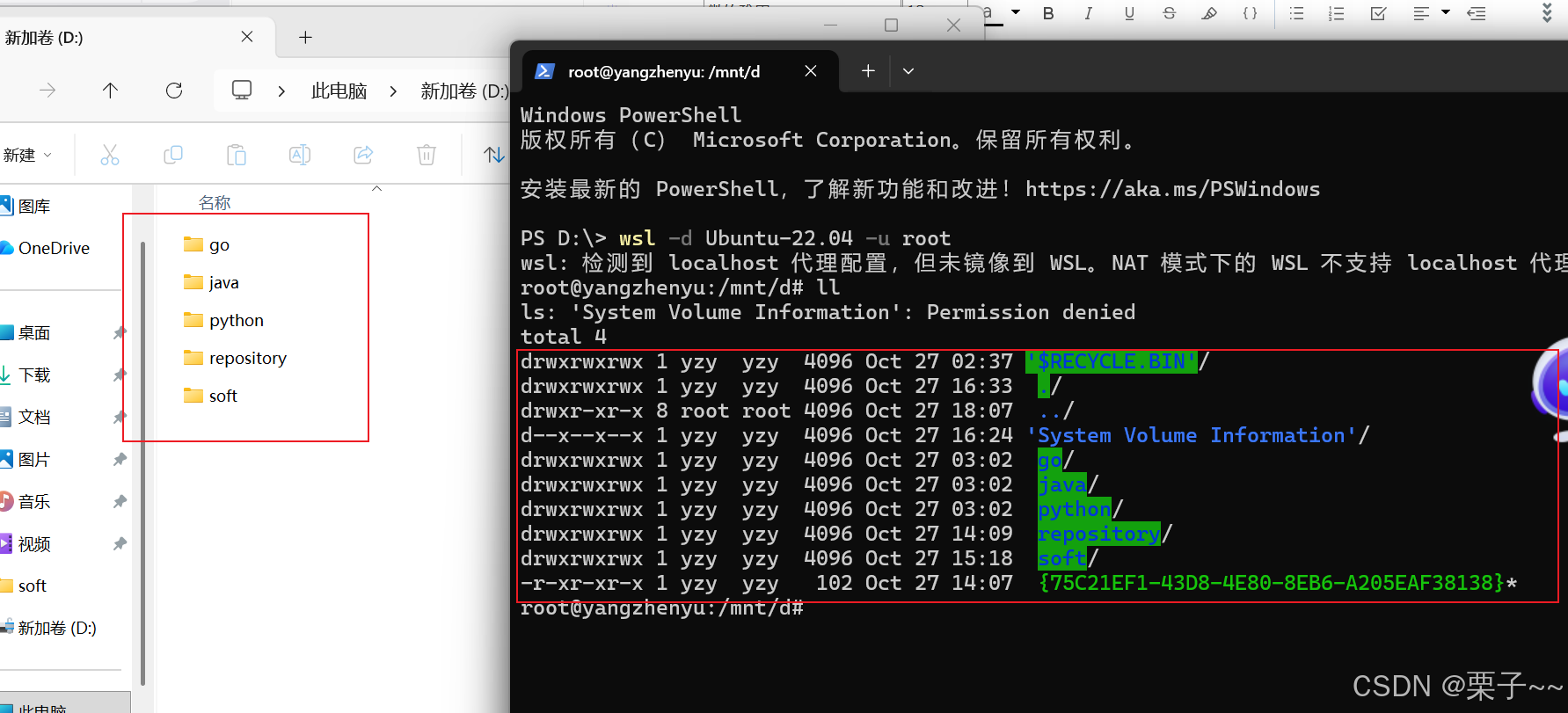 * D 盘 可以通过 /mnt/d 访问,依此类推。