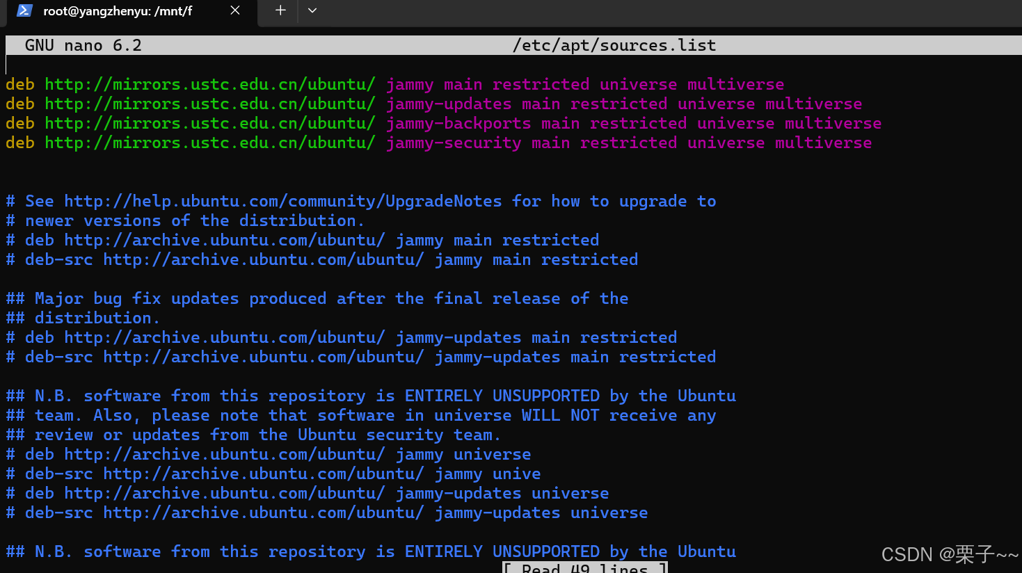 deb http://mirrors.ustc.edu.cn/ubuntu/ jammy-security main restricted universe multiverse