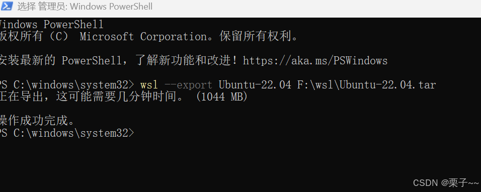 wsl --export Ubuntu-22.04 F:\wsl\Ubuntu-22.04.tar