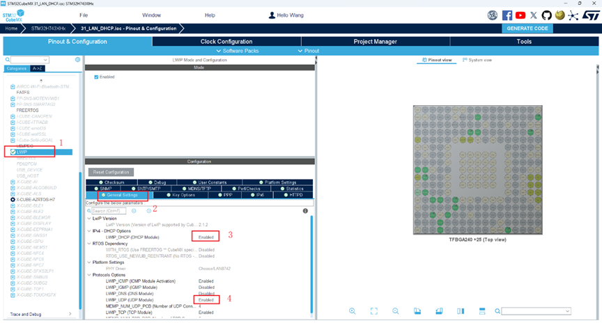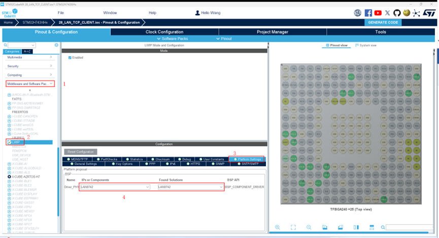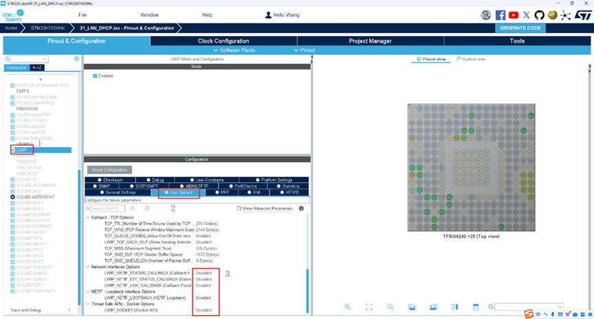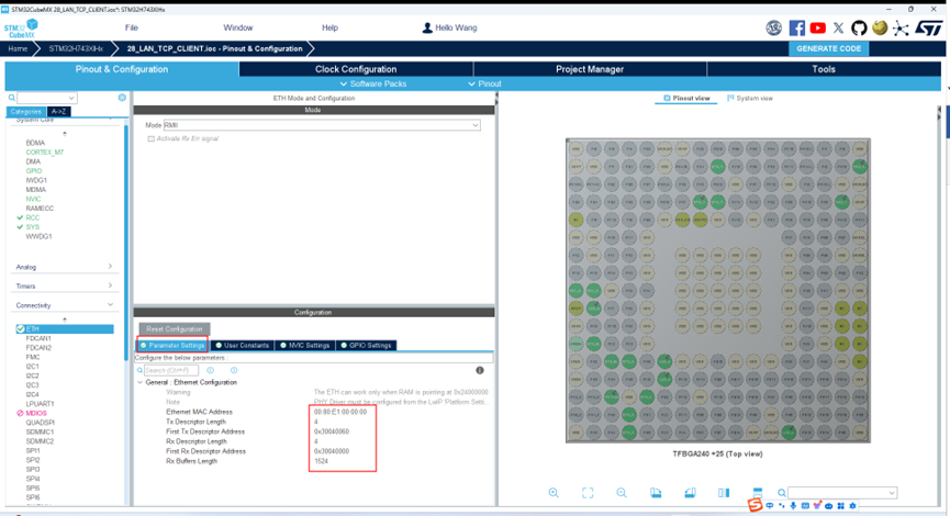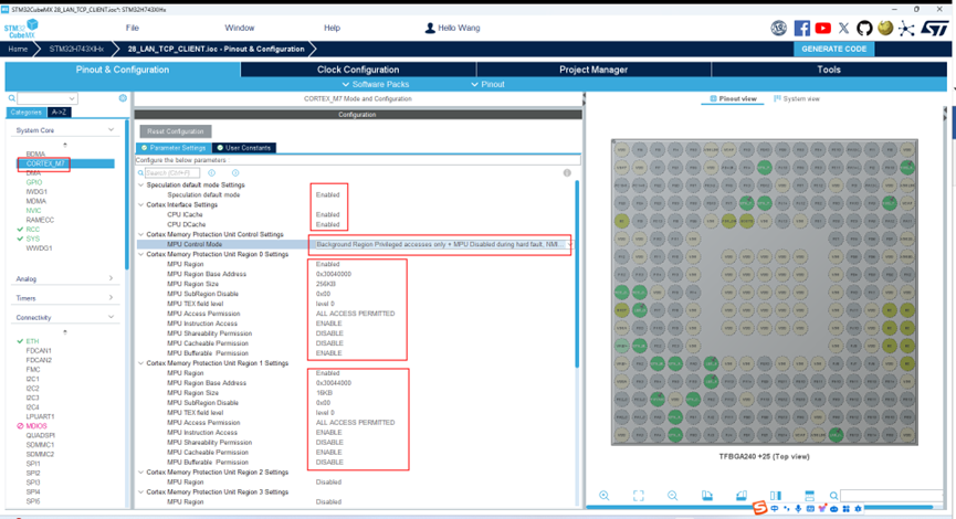 我们参考前面章节STM32H743-结合CubeMX新建HAL库MDK工程,打开CubeMX软件,重复步骤不再展示。我们来看配置MPU配置、以太网部分和Lwip部分配置如下图所示: