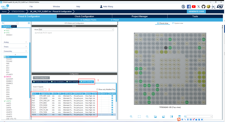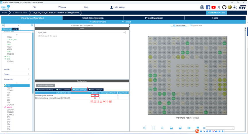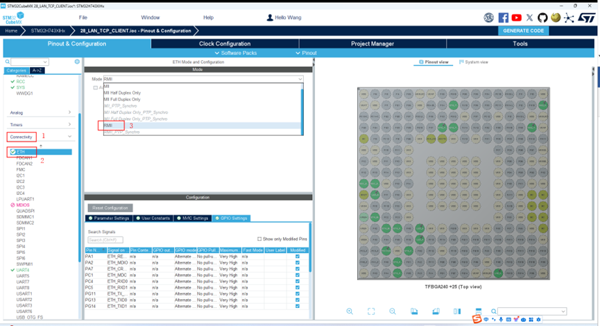 配置以太网。选用RMII(精简的独立于介质接口)模式
