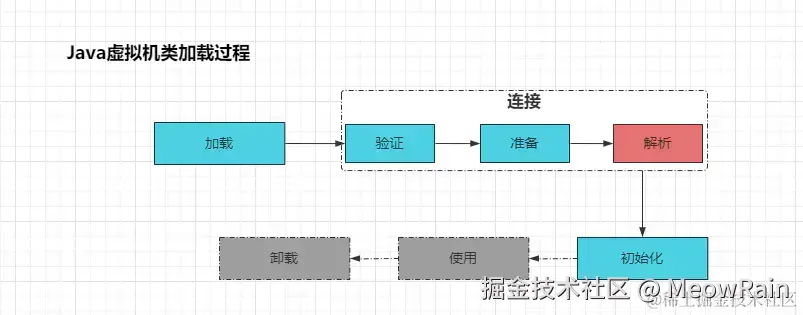 "验证、准备、解析" 是 Java 类加载系统中 链接(Linking)阶段 的三个重要子阶段。
