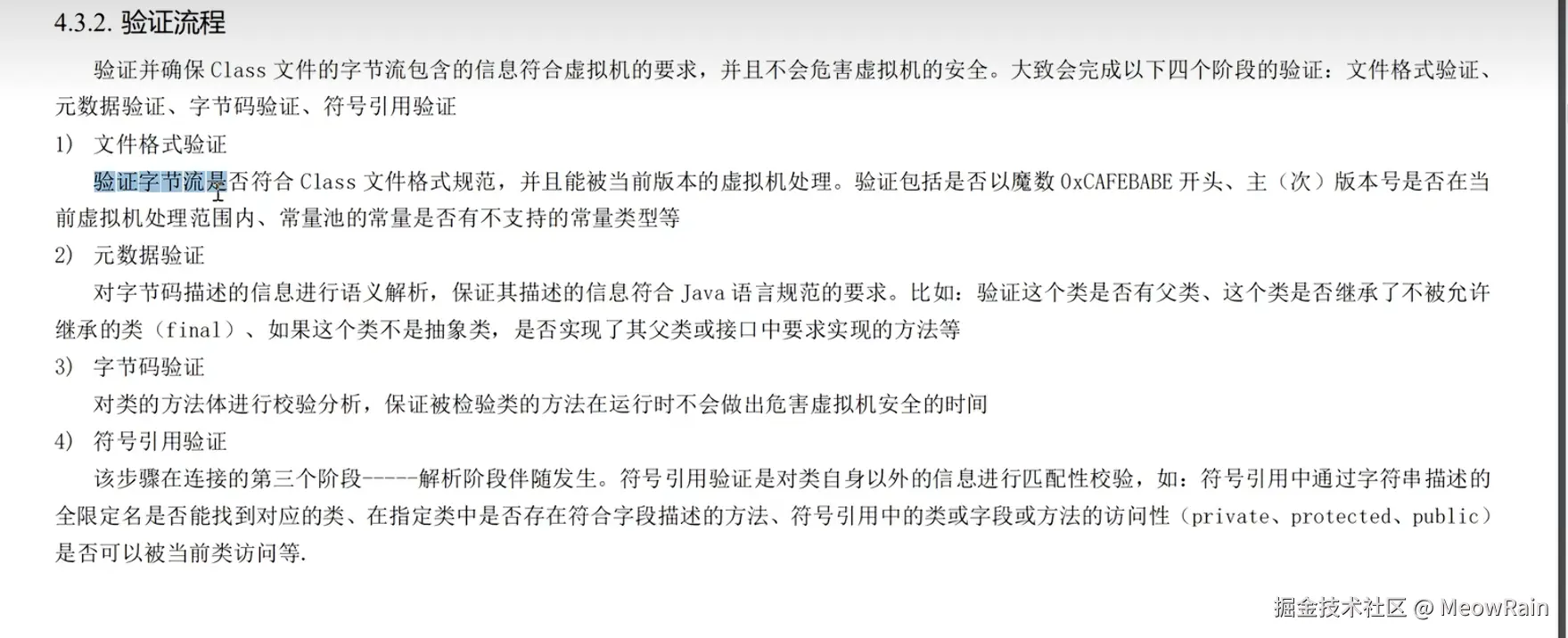 作用: 检查类文件是否符合 JVM 规范,确认不会造成安全问题。