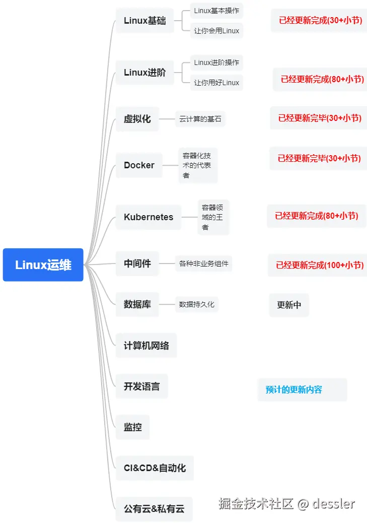 作者介绍:简历上没有一个精通的运维工程师。请点击上方的蓝色《运维小路》关注我,下面的思维导图也是预计更新的内容和当前进度(不定时更新)。