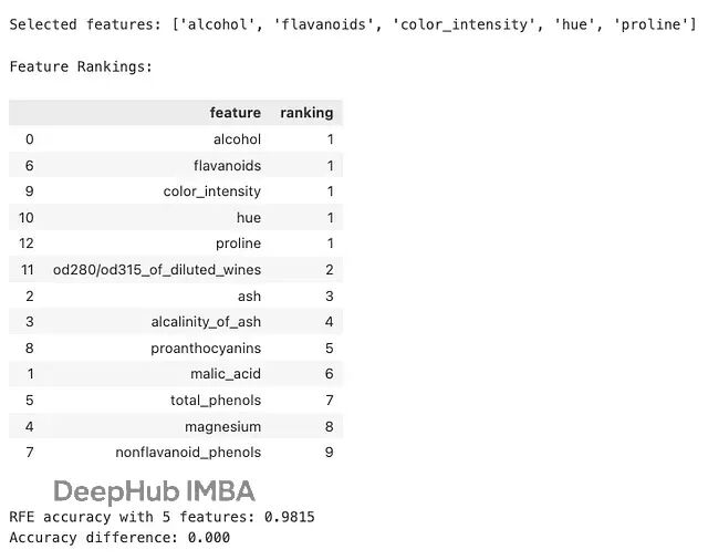 print(f"Accuracy difference: {rfe_score - baseline_score:.3f}")