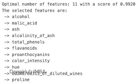 print(f"Optimal number of features: {rfecv.n_features_} with a score of {rfecv.cv_results_['mean_test_score'].max():.4f}")