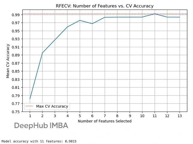 print(f"\nModel accuracy with {rfecv.n_features_} features: {rfecv_score:.4f}")