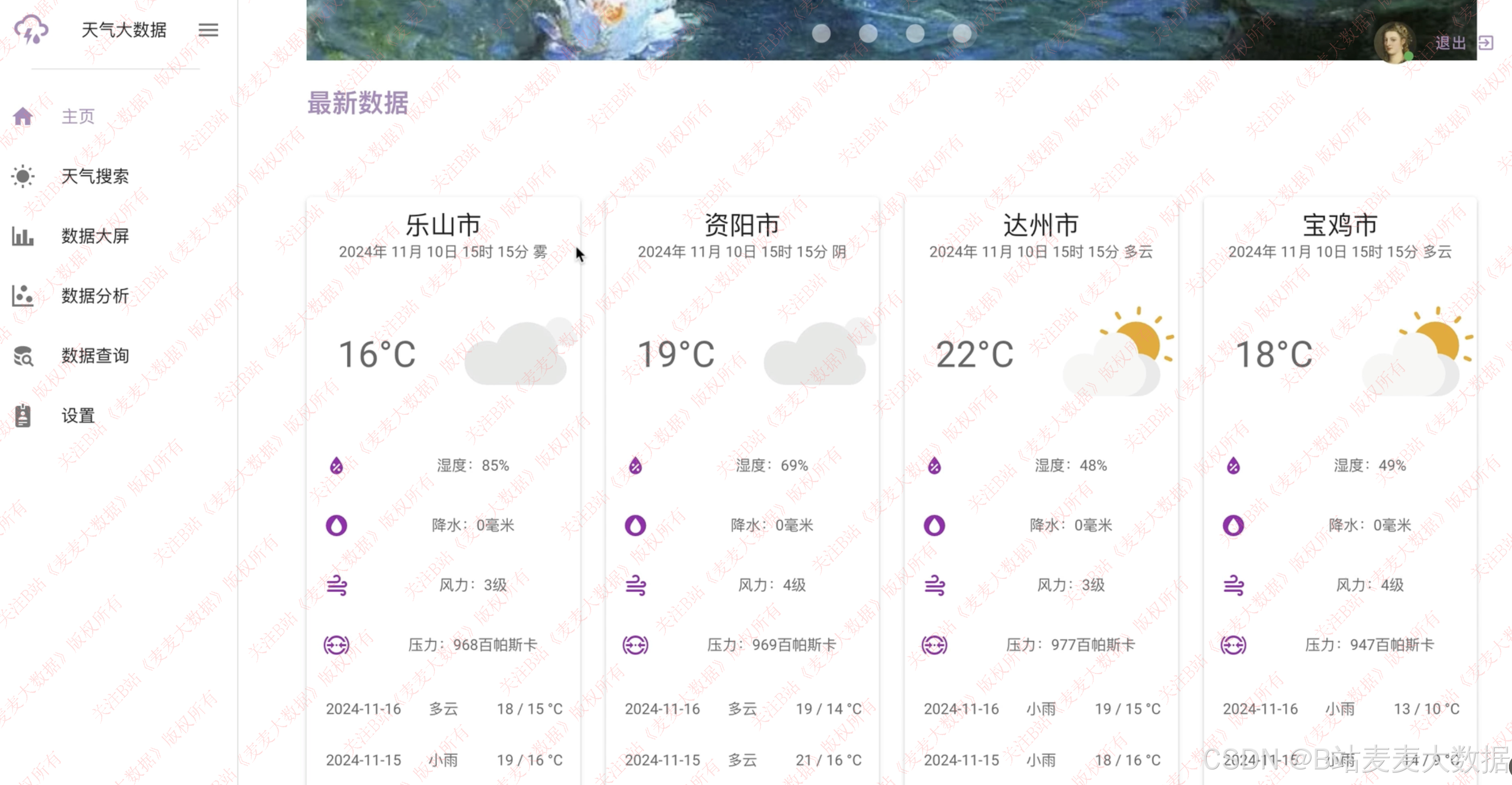 vue+flask天气预测可视化系统大数据+机器学习+管理端+爬虫+超酷界面+顶级可视化水平