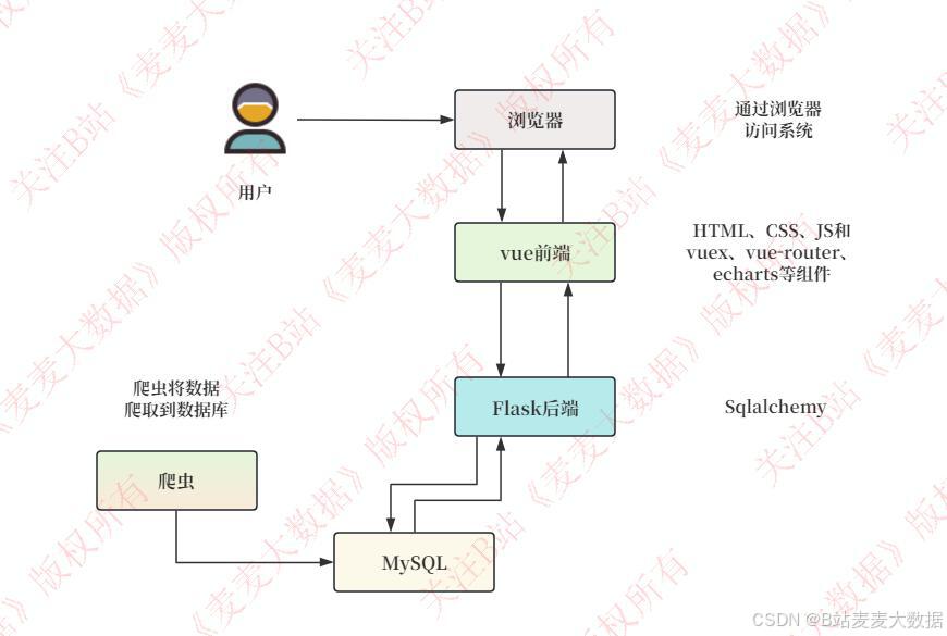 Vue + Flask 前后端分离架构:2个前端 + 1个后端 + 1个爬虫
