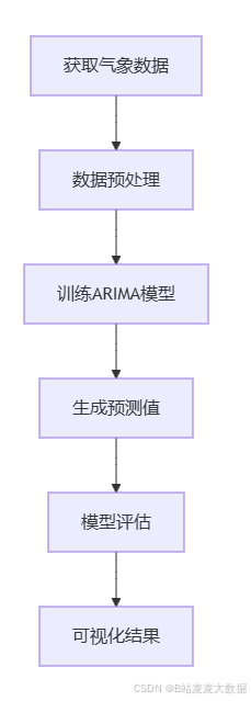 该功能实现了基于算法的城市气温预测,包含数据获取、预处理、模型训练和预测四个主要步骤。首先,从气象数据API获取目标城市的历史气温数据,并进行数据清洗和格式转换。然后,对数据进行差分处理,确保时间序列的平稳性。随后,训练ARIMA模型并使用历史数据验证模型的准确性,最后根据模型生成未来的气温预测值,并通过可视化的方式展示预测结果