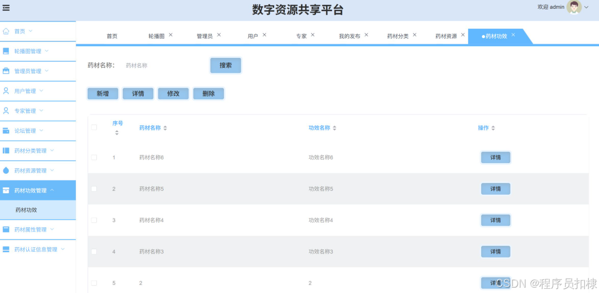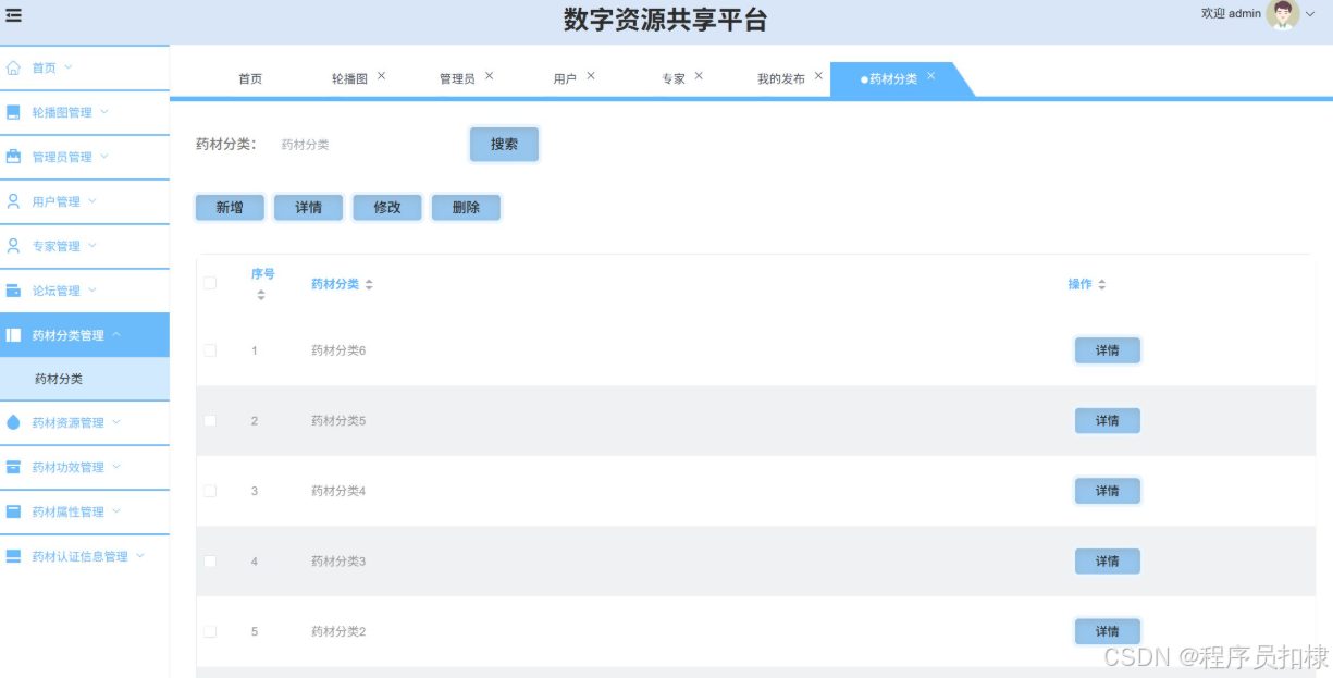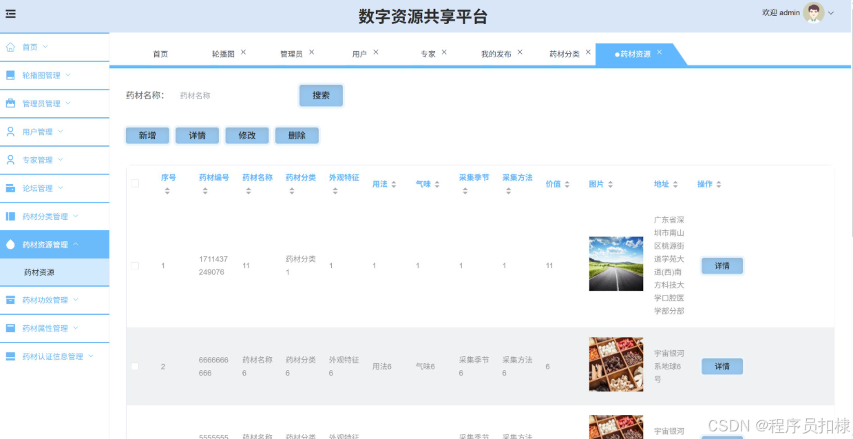 药材认证信息管理:新增、查看、修改、删除药材认证信息。